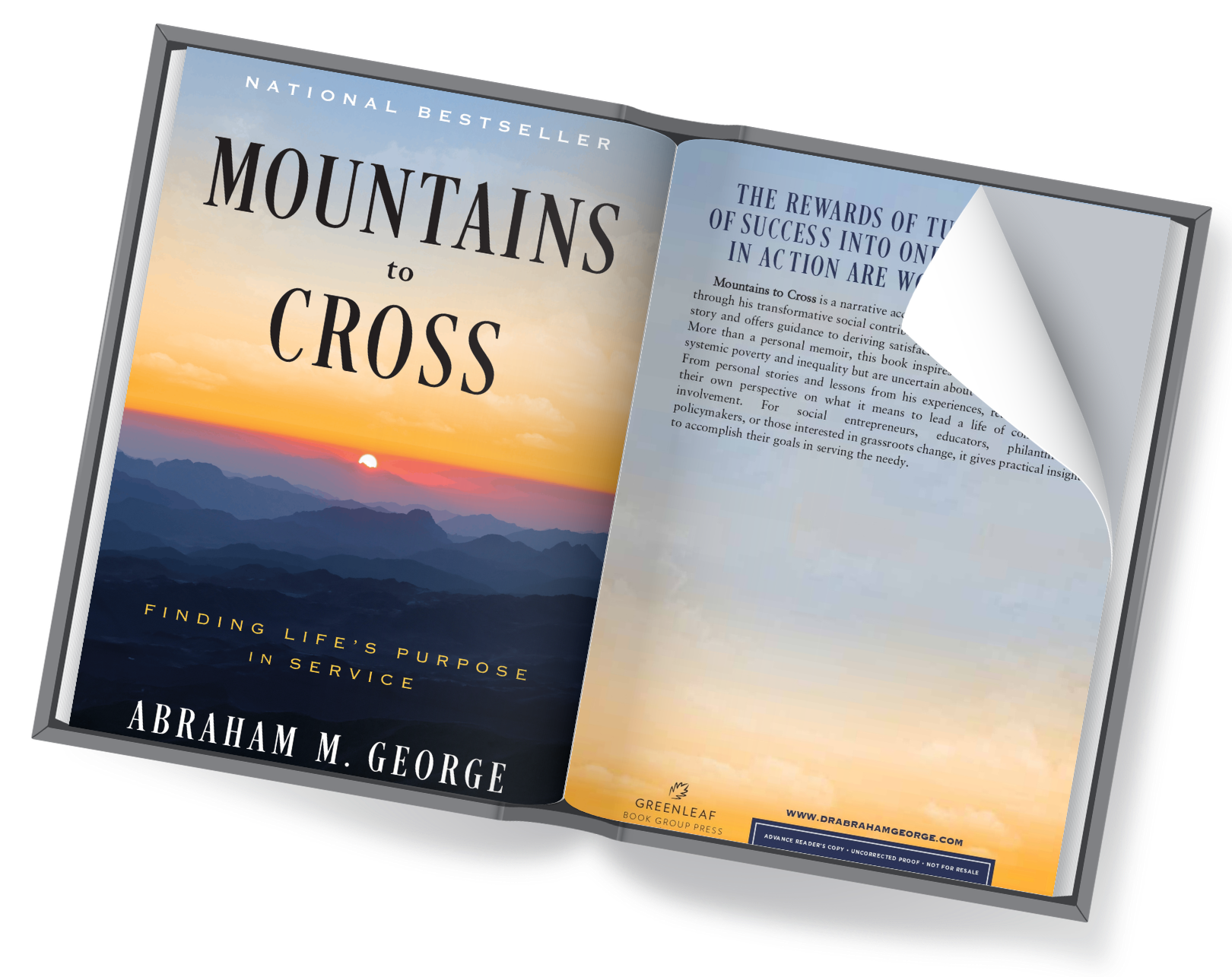 A feature on Dr. Abraham George’s memoir Mountains to Cross traces his journey from Wall Street success to founding Shanti Bhavan, transforming lives through education.