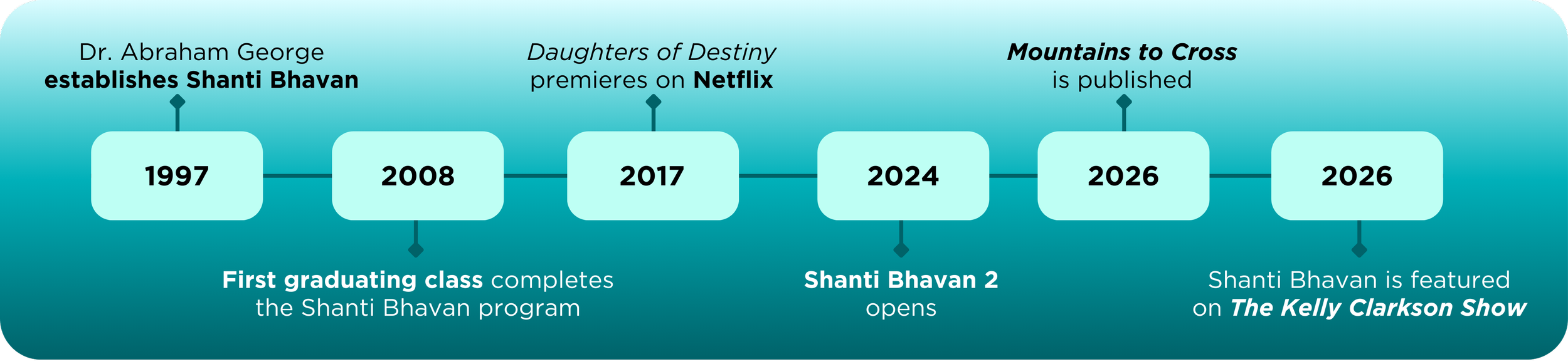 The story of Shanti Bhavan has reached audiences across the world. From the Netflix documentary Daughters of Destiny to the publication of Mountains to Cross, Dr. George’s memoir about the journey that began with a simple but ambitious idea: that education could change the trajectory of an entire generation.